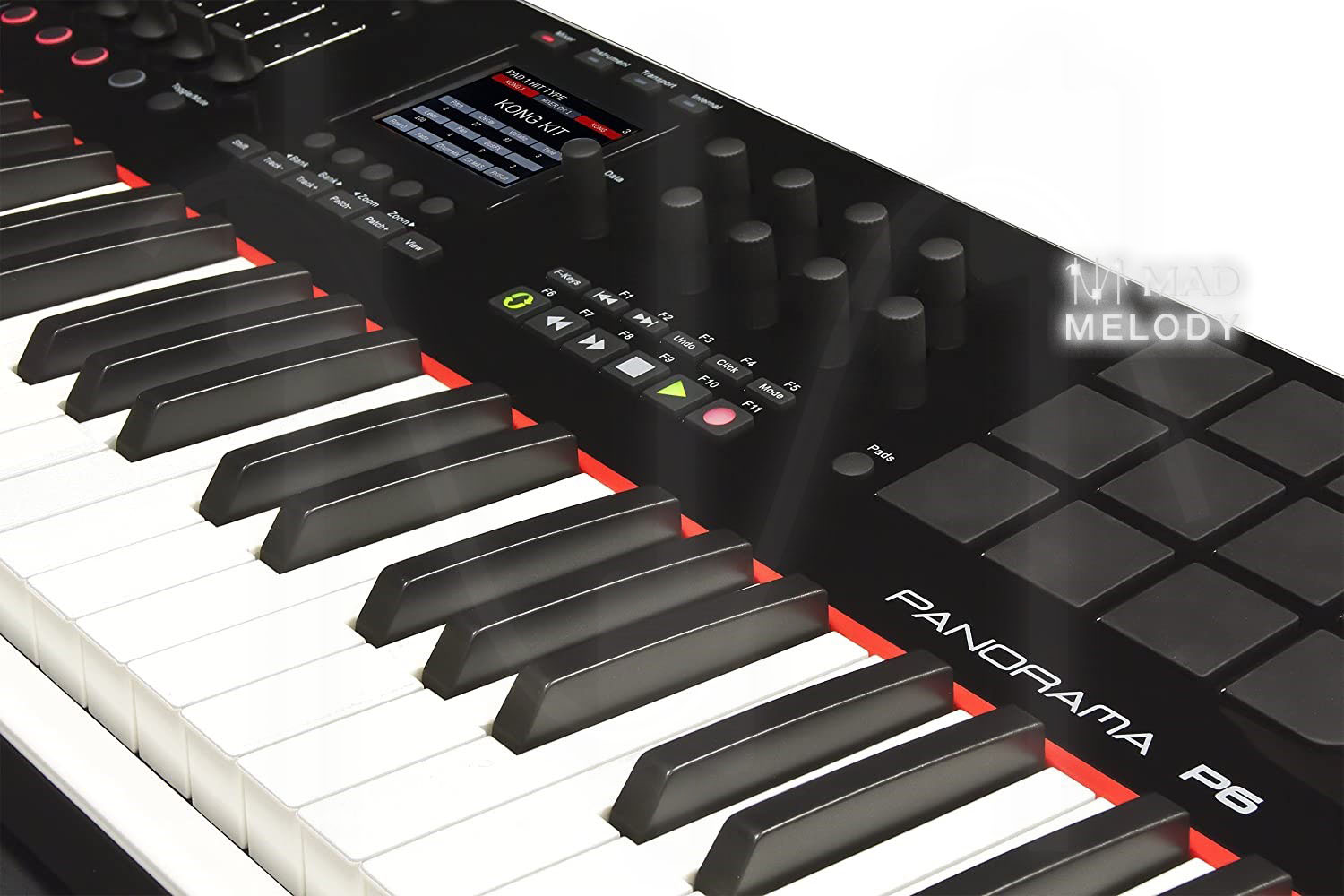 An unrivaled amount of assignable controls makes Panorama the most comprehensive and fully featured MIDI controller keyboard around. 16 encoders, 9 45mm faders, 1 100mm motorized ALPS fader, 10 LED buttons, 28 buttons, 12 pads each with strike and pressure component, foot switch jack, expression pedal jack, keyboard after touch, pitch bend and modulation wheels gives you immediate control of up to 93 parameters at any one time. You can store settings in 20 presets with individually savable and loadable keyboard-, pad- and F-keys-maps. We could argue that it gives you access to over 1500 assigned controls, but that would be spinning it too far.