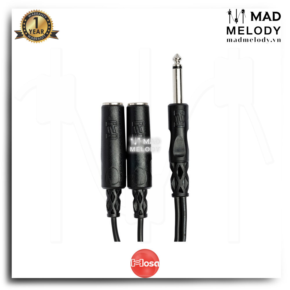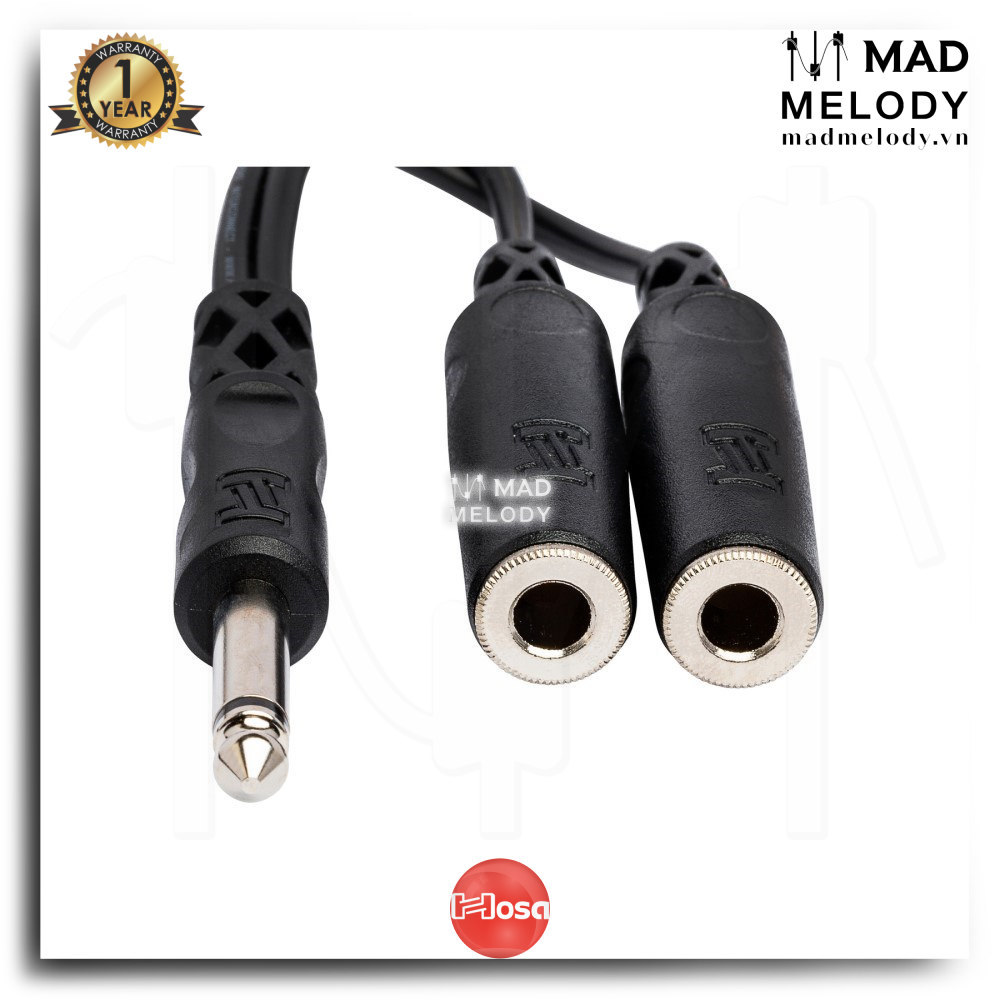 Dây cáp tín hiệu chữ Y mono Hosa Y Cable YPP-111 dùng để nhân đôi tín hiệu mono, chia một đường tín hiệu 6ly 6.35mm unbalanced thành hai, lý tưởng khi dùng thu âm so sánh hoặc thu âm kết hợp.