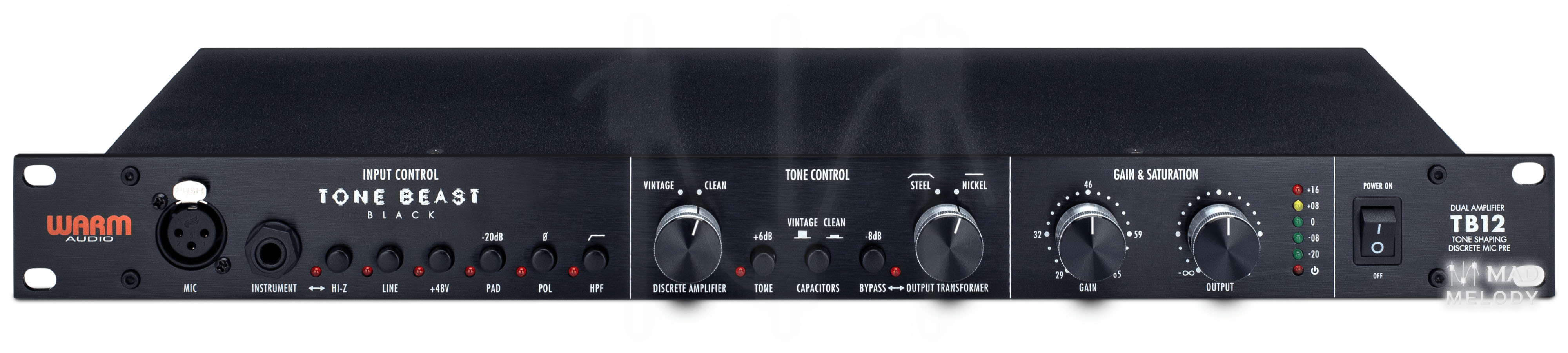 The TB12 Tone Beast Black is a fully professional preamp design with loads of gain that can effortlessly capture an array of sources very well. It is a swiss army knife full of options and tones. With top notch CineMag transformers and multiple discrete signal paths, it's hard to beat the Tone Beast's big, bold, fully-professional sound at this price.